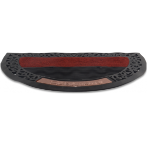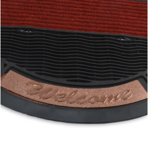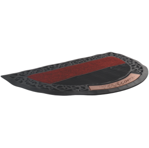 Felpudo semi circulo 48 x 78 cm borde goma welcome dorado y felpa roja