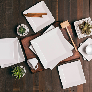 Blanco Cuadrado Jgo. Platos 30 pzs. EN BAUL